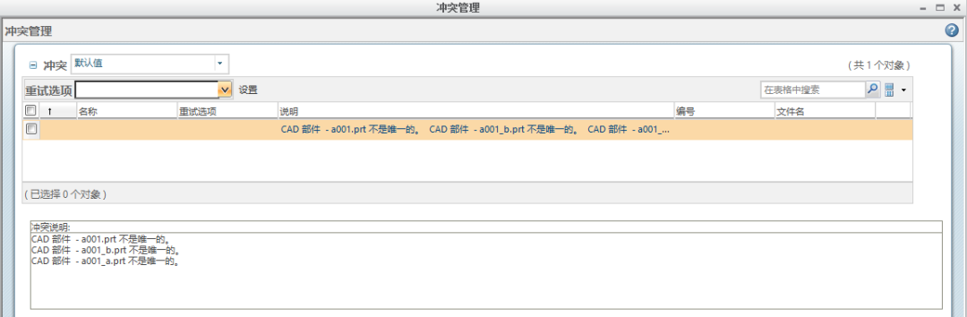 检入失败(CAD部件不是唯一的),说明此文件在WINDCHILL服务器中可能存在同名的文件,即检入对象生成的编号值不唯一。