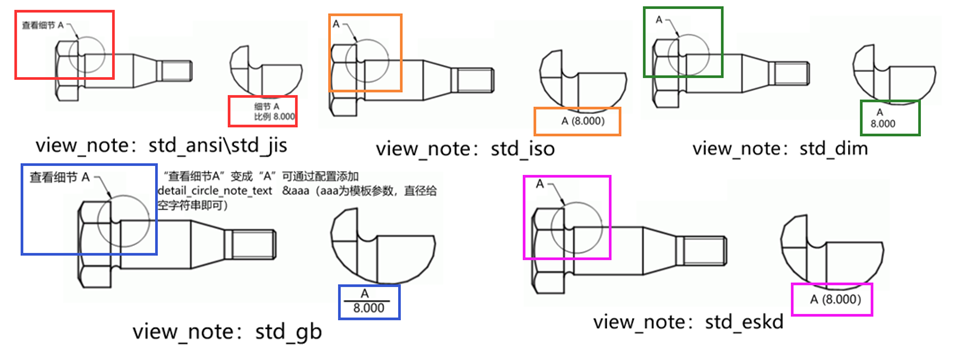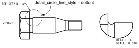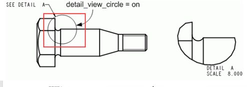 ❄ detail_view_circle:设置局部详图在父视图中是否以圆显示局部区域的范围。若设为 on, 则在父视图中以圆显示局部区域的范围;若设为 off,则局部详图在父视图中的范围不显示,如下图所示: